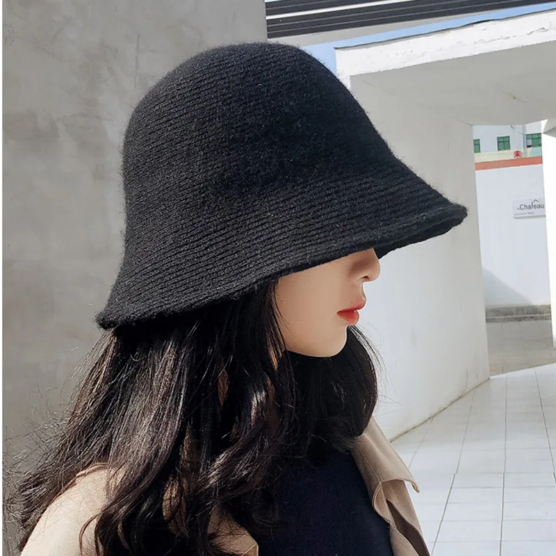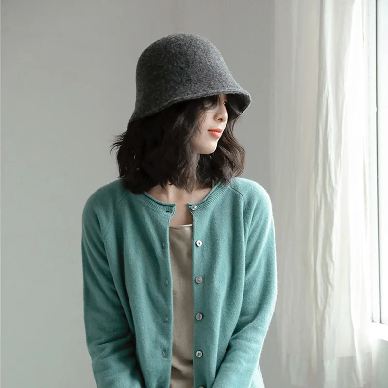 PULSERA DE NÚMEROS ROMANOS MAXSITI U Solid Keep warm Wool Bucket Hat for Women Autumn and Winter Fisherman Hat Vintage Knitting Basin caps for ladies |